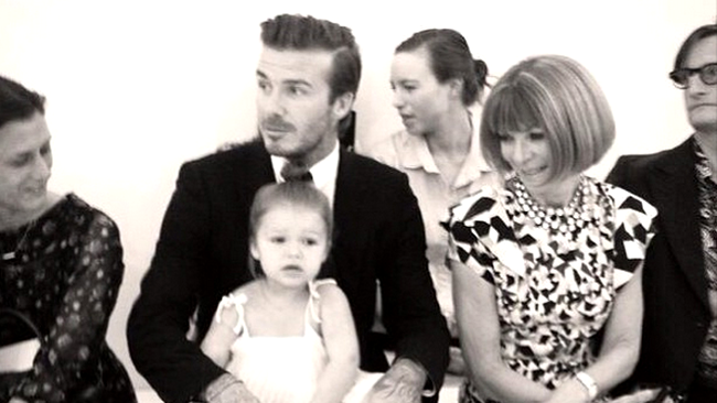 19. David Beckham și fiica lui, pe primul rând la o prezentare de modă importantă, lângă Anna Wintour.