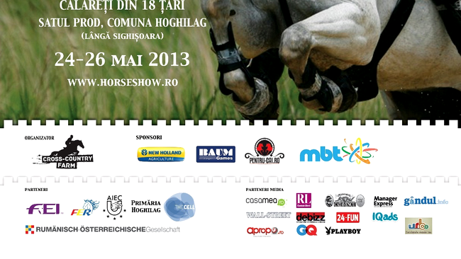 În mai puțin de o lună, peste 70 de concurenți din 19 țări vor participa în perioada 24-26 mai 2013, la Transylvania Horse Show, cel mai cunoscut concurs hipic internațional din România. Transylvania Horse Show, ajuns la a treia ediție, este un eveniment de talie internațională, dedicat sporturilor ecvestre și iubitorilor de cai, desfășurat într-un peisaj idilic, în apropierea unuia dintre cele mai bine păstrate orașe medievale din Europa, Sighișoara.