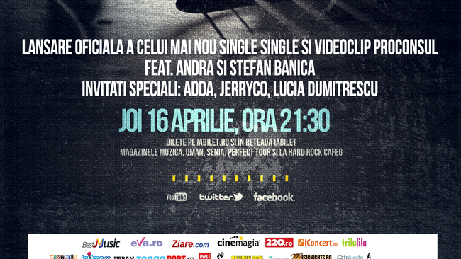 La spectacolul din 16 aprilie, pe scenă, alături de Proconsul, vor mai urca şi Adda, Jerryco şi Lucia Dumitrescu. Concertul începe la ora 21:30, iar biletele pot fi cumpărate online, de pe www.iabilet.ro dar şi de la magazinele Muzica, Uman, Senia, Perfect Tour şi direct de la Hard Rock Cafe.