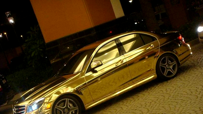 Privind acest Mercedes aurit, primul lucru la care ne gandim este ca probabil costa o avere.