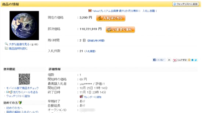 Vânzătorul a descris planeta Pământ ca fiind autentică și a avertizat potențialii clienți că nu va putea fi returnată după achiziționare. De asemenea, el îi roagă pe cei interesați să se exprime cu seriozitate dacă vor să cumpere planeta, altfel se va simți obligat să încheie licitația. De altfel, el a făcut asta o dată și a relistat-o pornind de la alt preț.