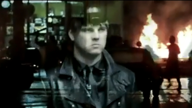 El poate fi vazut in mai multe scene, purtand uniforma din piele