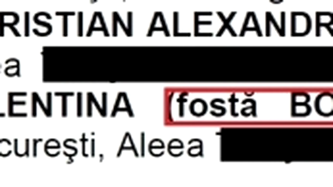 Astfel, dacă pâna la sfârșitul anului trecut, Valentina apărea în acte cu numele „Pelinel – căsătorită Boureanu”, în ultimul astfel de document, redactat în urmă cu câteva săptămâni, aceasta apare „Pelinel – fostă Boureanu”.