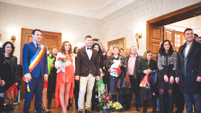 “Să fiţi mereu un pic pic îndrăgostiţi şi să vă trăiţi viaţa ca la 20 de ani!”, a fost mesajul solistului Voltaj pentru proaspătul cuplu căsătorit.