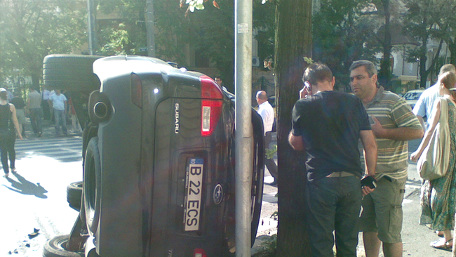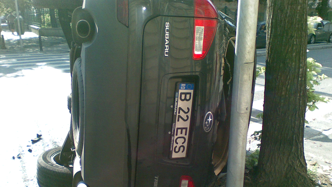 Noroc ca nu se aflau pietoni in zona in care s-a rasturnat Subaru  |
